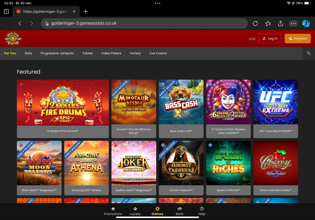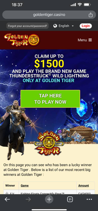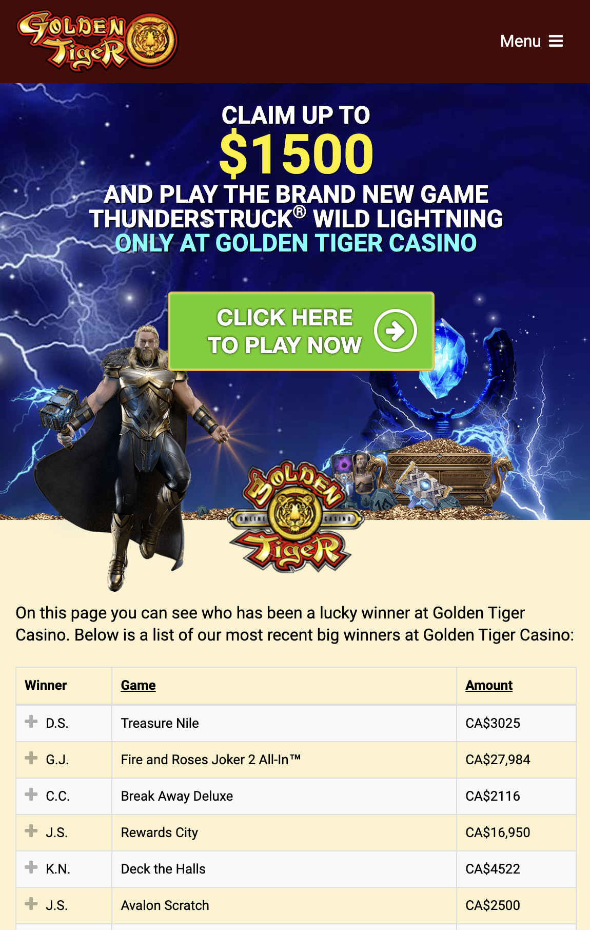 New players at Golden Tiger Casino must register to qualify for the offer. Bonuses received are credited as bonus funds, not cash. Each deposit is considered separately; only the first five deposits count towards the bonus. A minimum deposit of $10 is required. Players must meet wagering requirements as per the General Promotion and Bonus and Cash Account Terms. The promotion must be claimed within seven days of the first deposit, after which the casino may alter the offer.